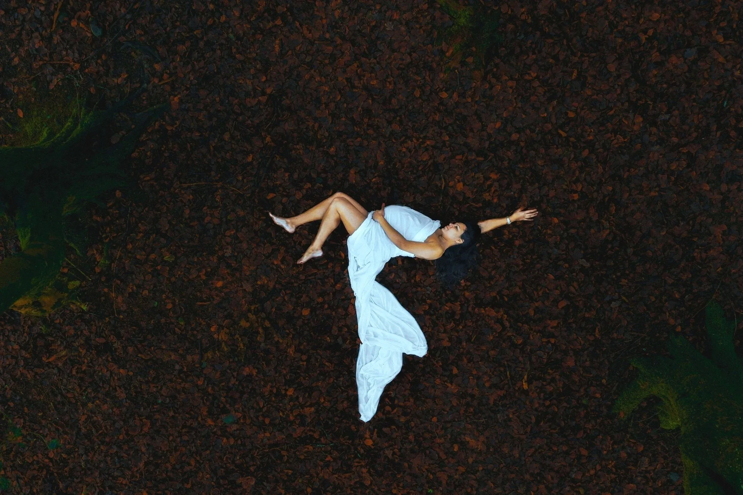Photographed in a forest environment during pregnancy.