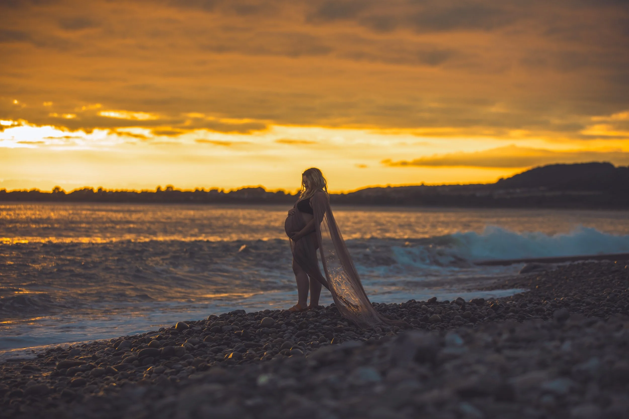 Photographed by the sea during pregnancy.